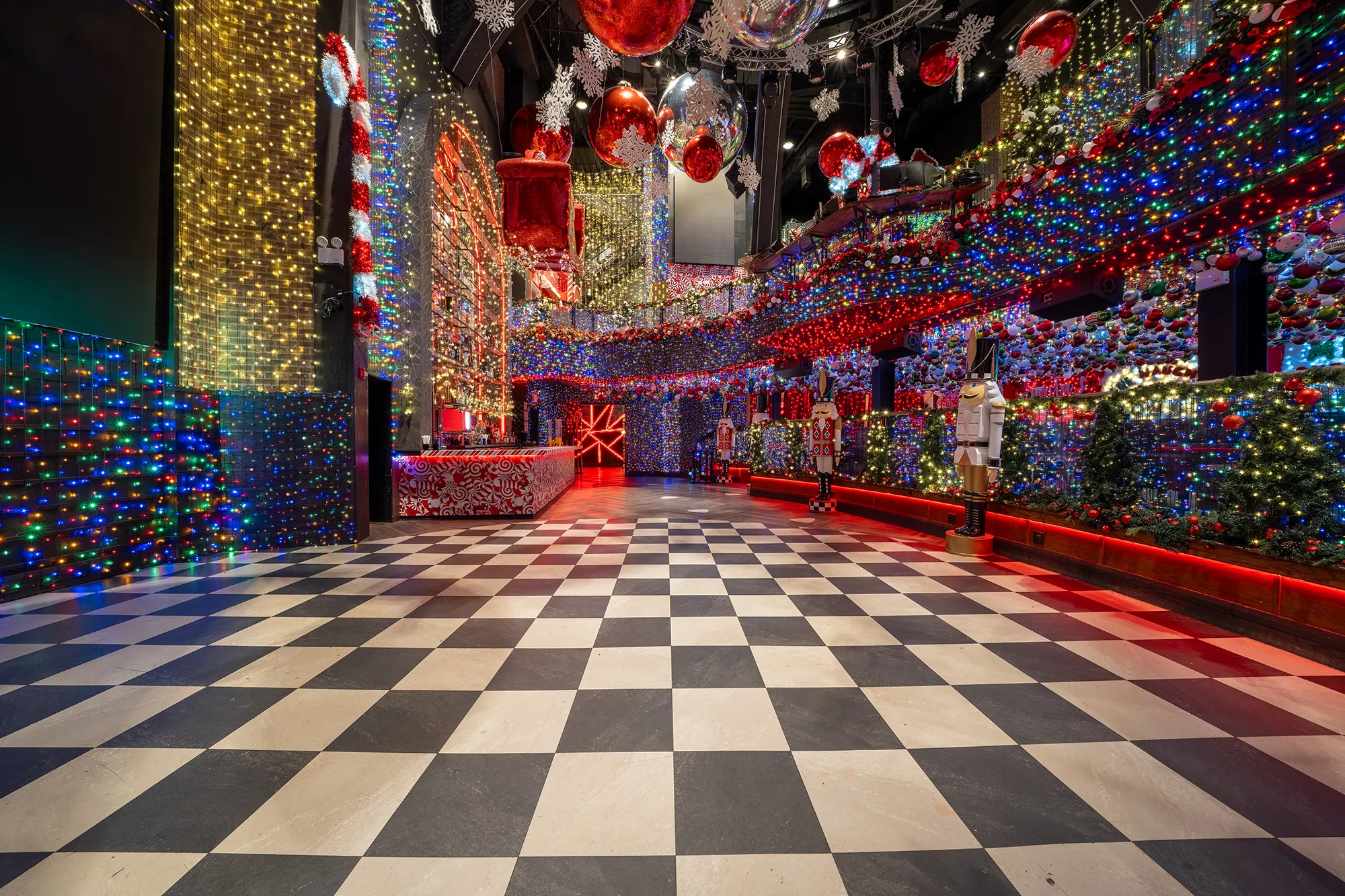 Celebrate where the action is—just steps from the iconic Times Square Ball Drop. Wander through the Winter Wonderland pop-up rooms, snap photos in the immersive décor, grab a themed cocktail, then head to the multi-level nightclub featuring dramatic LED lighting, a massive dance floor, and crystal-clear acoustics. Whether you're in the middle of the main floor with over a thousand partygoers or toasting from a private VIP booth, you’ll be surrounded by pure Times Square electricity as the clock strikes midnight.
