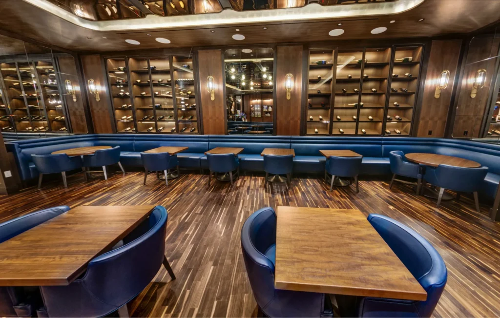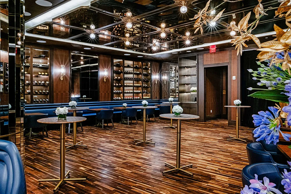 Ring in 2026 at NYY Lounge, the upscale private event space on the ground floor of Hard Rock Hotel Times Square. Mozambique wood-paneled walls frame blue leather banquettes beneath an antique bronze mirrored ceiling, where dimmed lighting creates intimate atmosphere suited for celebration. Street-level entrance with dedicated pre-function space puts you steps from Times Square without the typical hotel lobby maze. This 1,800-square-foot jewel box transforms for New Year's Eve into an upscale lounge with Hard Rock hospitality and a crowd intimate enough to actually meet.