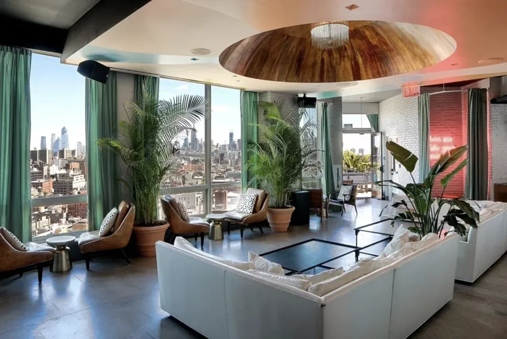 Crown Rooftop is a stylish indoor-outdoor rooftop lounge atop Hotel 50 Bowery, hosting an elevated New Year’s Eve party in Downtown Manhattan with panoramic skyline views. Located near SoHo, Chinatown, and the Lower East Side, Crown Rooftop is known for its modern design, spacious layout, and upscale downtown nightlife atmosphere—making it a top choice for NYE celebrations.